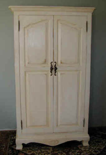 Customer GalleryFrench Provincial ArmoireThis French Provincial style armoire is built from poplar. It features rounded crown molding, raised panel doors, a beaded face frame, solid-wood frame-and-panel back, and an antiqued painted finish. Built by Robert Jones, Downingtown, PA. |